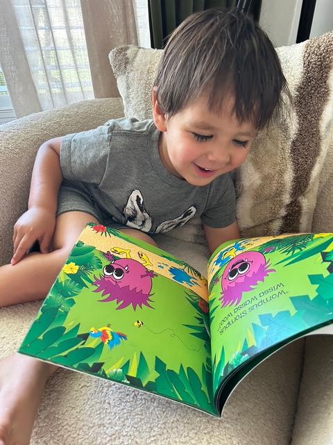 I ordered this book to read to my son and he absolutely loves it!! He is 5 months old and loves all of the bright colors on every page. I can’t wait until he is older and is able to stomp around with Wompus! This is now my go-to gift for baby showers and kids birthday parties!
